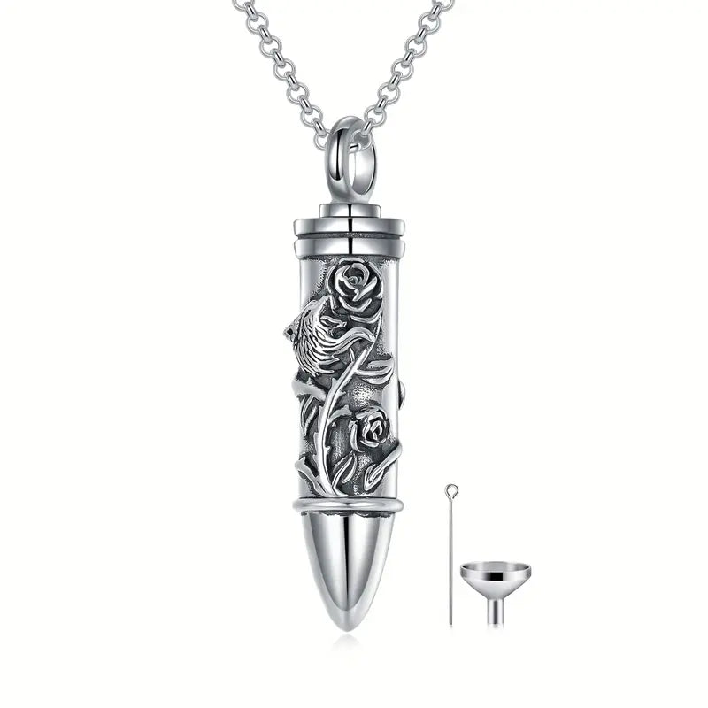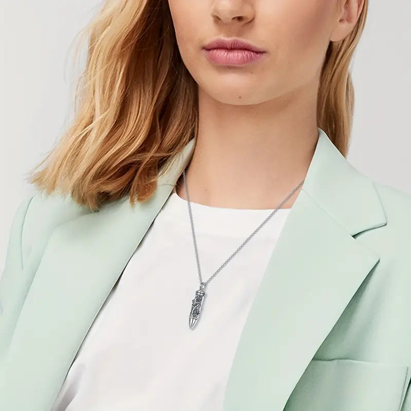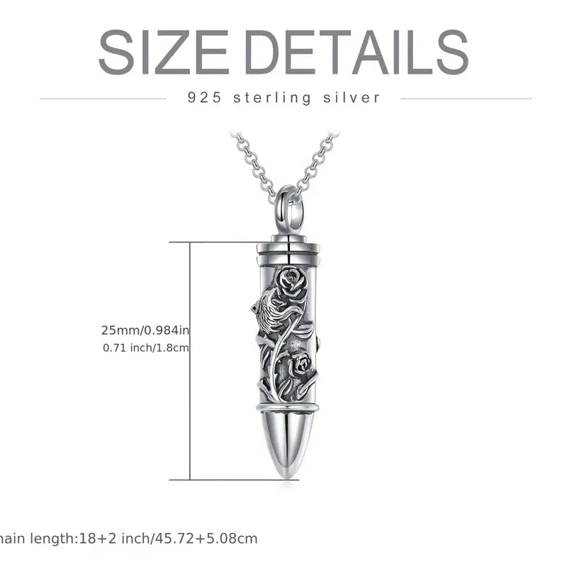 A bold and meaningful way to keep your loved one close. This bullet-shaped urn necklace is more than jewelry—it’s a symbol of strength, memory, and everlasting connection.