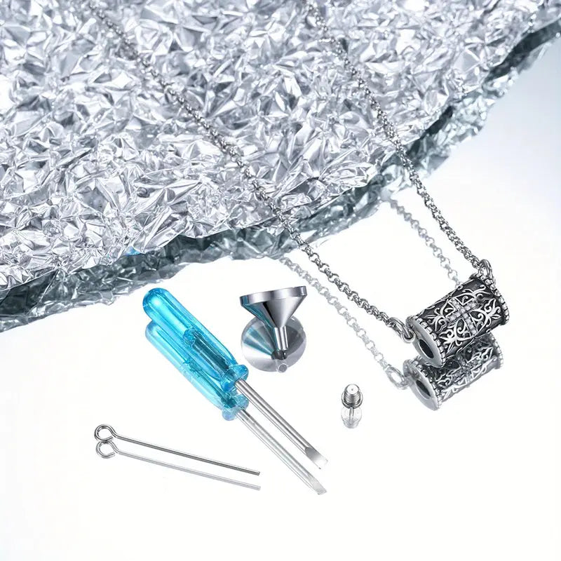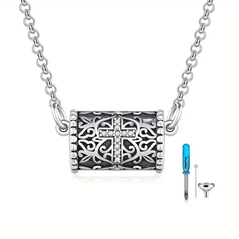 - Design: Verfügt über einestabförmiger Urnenanhängerdas eine kleine Menge Asche oder ein Andenken aufnehmen kann.