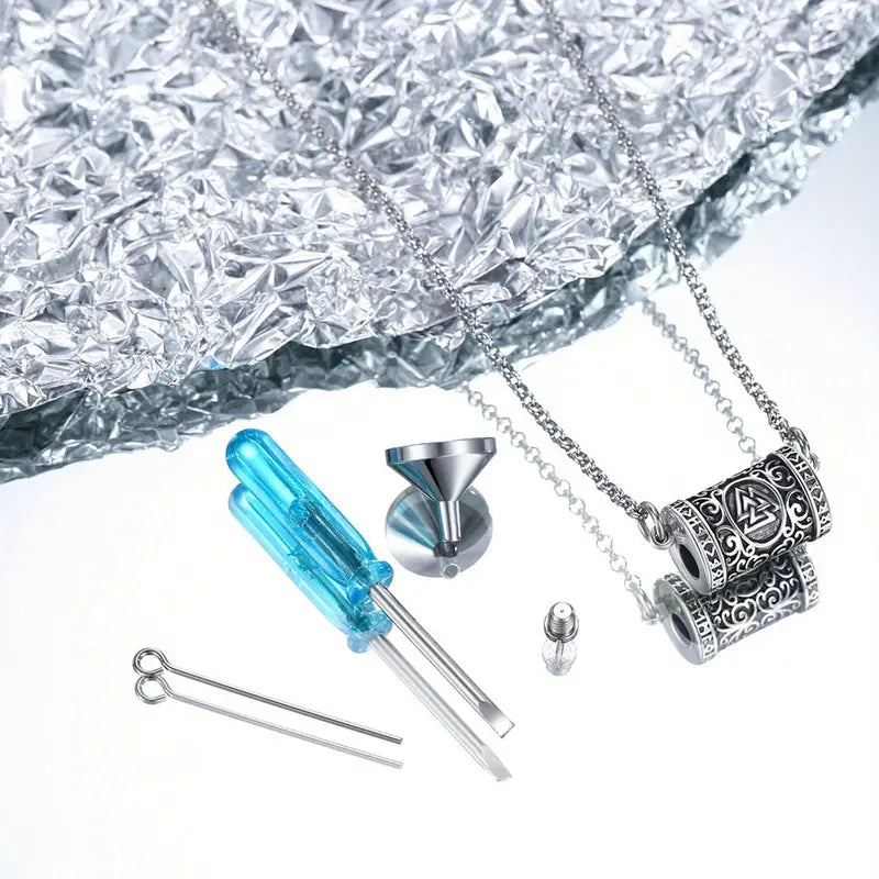 - Design: Verfügt über einestabförmiger Urnenanhängerdas eine kleine Menge Asche oder ein Andenken aufnehmen kann.